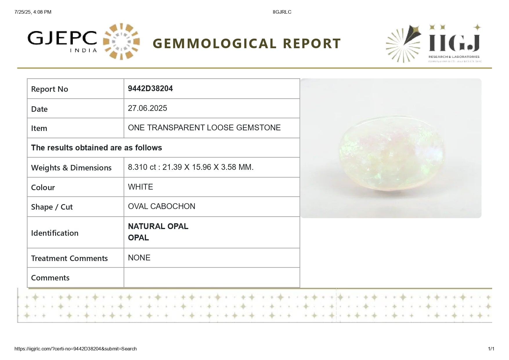 Product Detail : Natural Opal 8.31 Carats