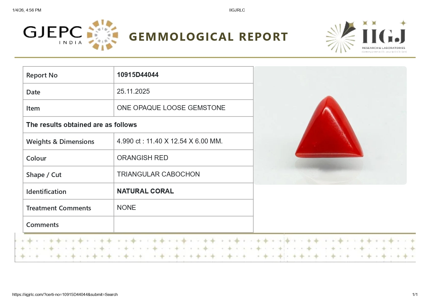 Product Detail : NATURAL RED CORAL (Moonga) 4.99 CARATS