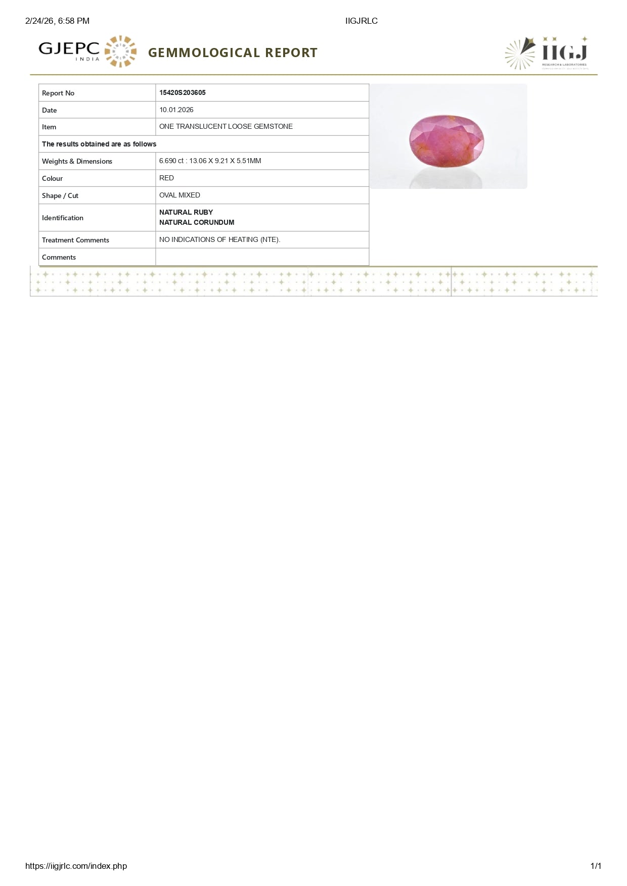 Govt Lab Certified - IIGJ (Formerly -IGI-GTL, Worth 1500/-)