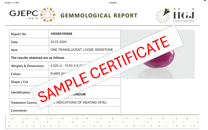 Govt Lab Certified - IIGJ (Formerly -IGI-GTL, Worth 1500/-)