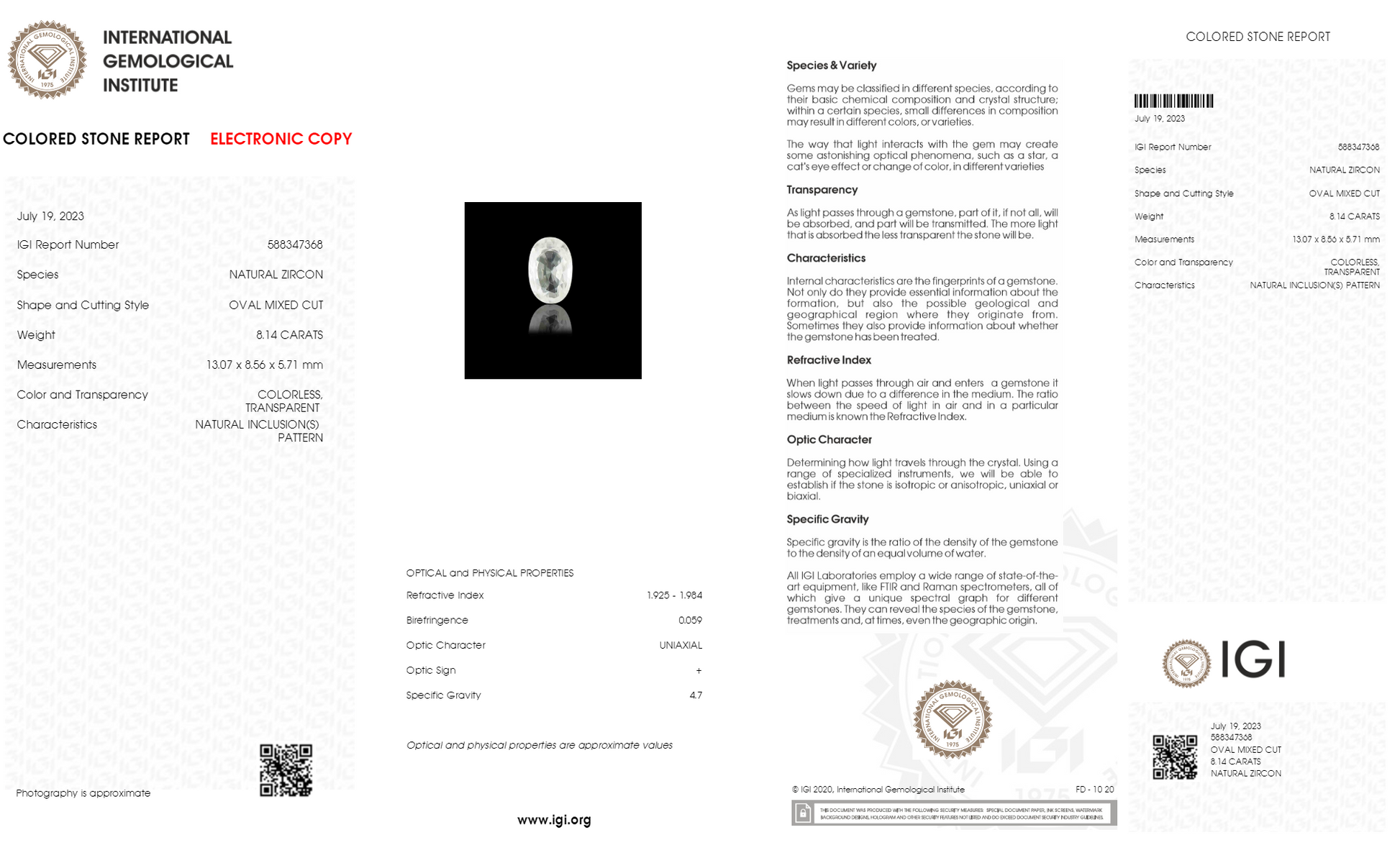 IGI(INTERNATIONAL GEMOLOGICAL INSTITUTE)